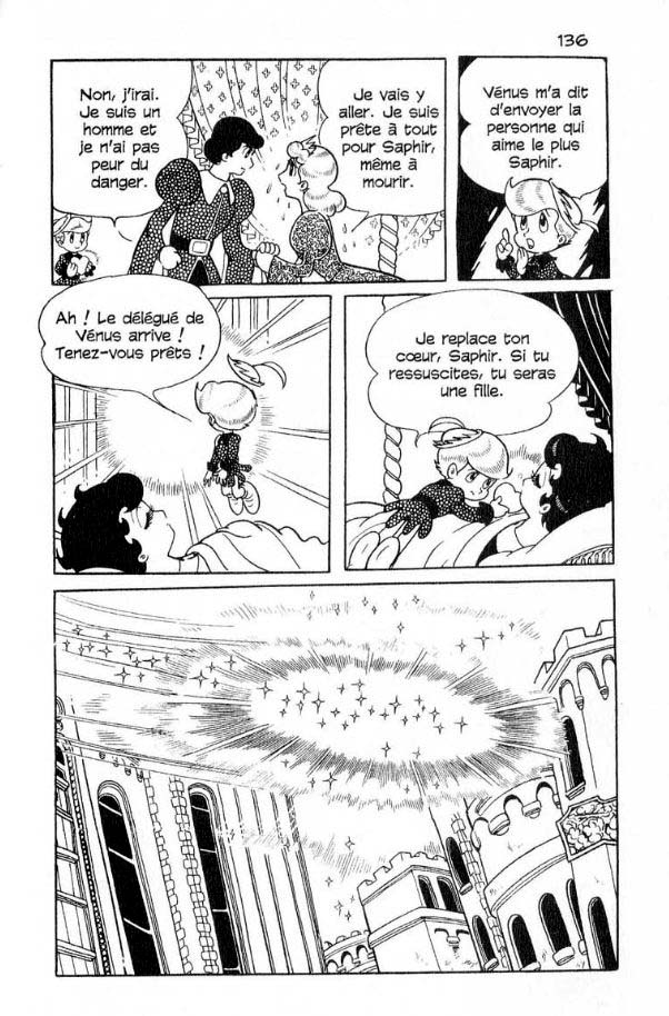 Je ne suis pas un grand fan de l'oeuvre d'Osamu Tezuka. J'ose le dire même si je sais que c'est un monument du manga qui a inspiré plus d'une génération de mangakas. Les aventures de cette princesse Saphir au royaume imaginaire de Silverland qui se travestie pour déjouer les plans de son oncle ne m'ont guère intéressé. Il est certes question d'identité mais la mise en oeuvre est parfois assez grossière. Cela reste trop classique malgré un scénario au départ assez ambitieux.