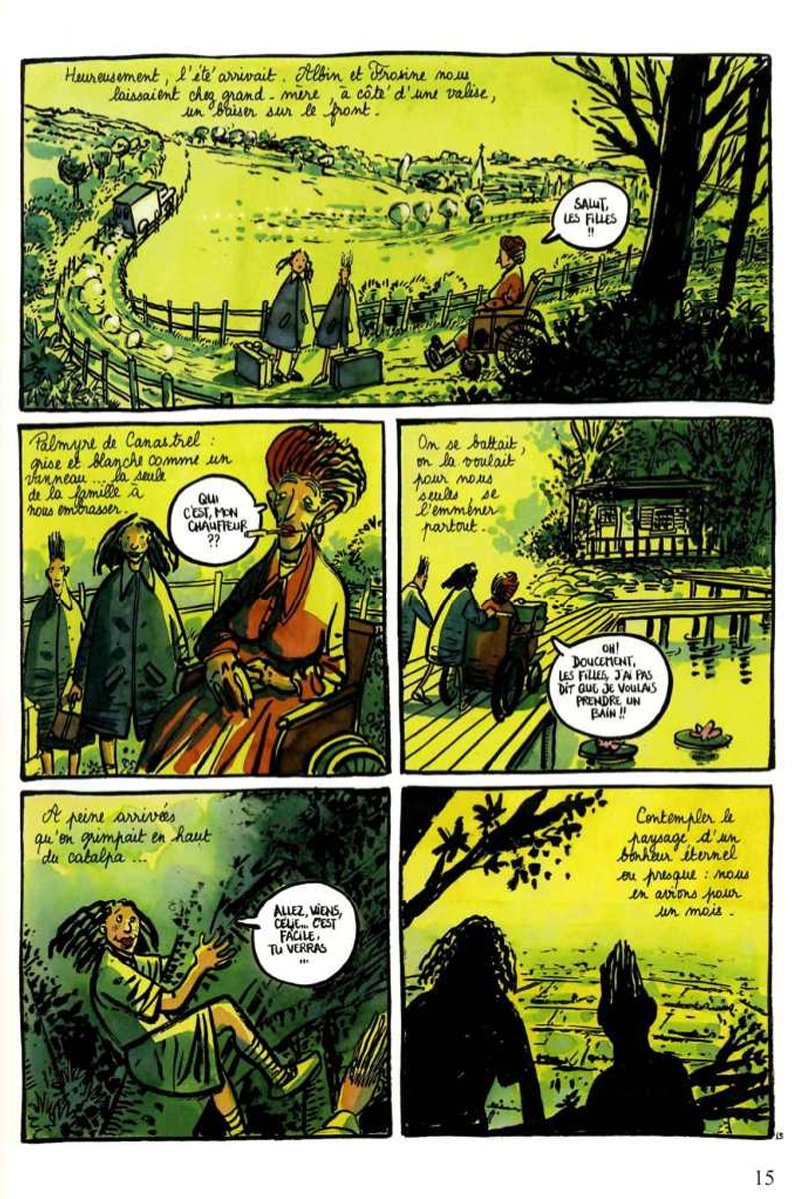 Après le très bon Là-bas, Tronchet a retrouvé Anne Sibran à l’écriture pour dessiner ce tout aussi bon "Ma vie en l’air". Les auteurs ont choisi de nous raconter cette histoire sous la forme d’un journal intime, en utilisant un gaufrier à 6 cases. Cela donne une ambiance tout à fait particulière à l’album. Le dessin épais de Tronchet et la colorisation accentuent le côté totalement onirique et surnaturel de cet album. Cette histoire est un conte : parfois cruel car cette jeune fille Ariane de Samca vit un rêve éveillé, persuadée de pouvoir voler comme les oiseaux. Le « vol » lui permet de s’échapper d’une famille qui l’effraie : un père boucher, associé à une mère repoussante, qui semblent s’en prendre à sa jeune sœur. Ariane s’enfuie sans cesse, au sens propre et imagé, trouve refuge auprès de Paulin, un doux rêveur, amoureux des oiseaux. Ce récit est en fait une réflexion sur la folie car Ariane est sans doute folle et c’est par son regard que l’histoire est vue. Cela provoque un effet de brouille, d’incompréhension. La structure narrative est éclatée, les ellipses sont nombreuses et ne rendent pas le récit linéaire. Le tout nous donne une histoire bien triste parce que rien ni personne ne semblent pouvoir sauver la jeune fille.