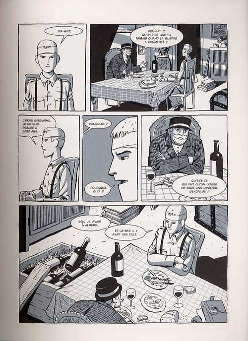 Une jolie histoire pour une BD qui l'est tout autant. J'ai eu un peu peur, au cours de ma lecture, en voyant la taille de la BD et la vitesse à laquelle avançait l'histoire, qui prend le temps de se poser et de développer son ambiance. Et pourtant, jusqu'au bout j'ai été sous le charme, jusqu'au dénouement qui est dans la veine de tout le reste. En prenant le cadre de la guerre civile espagnole mais d'une façon plus détachée, l'histoire nous offre une belle image. En fait je pourrais reprendre les mots de NoirDésir : une histoire qui se lit vite mais qui appelle une relecture. J'ai beaucoup aimé le dessin également, qui sait jouer sur les noirs et blancs, avec beaucoup de cases muettes, pour distiller son message et son ambiance. D'autre part, l'histoire finale m'a beaucoup beaucoup plu. Je ne sais pas trop si c'est une volonté que de faire ce pied de nez, mais il est bien trouvé et rajoute au charme de l'histoire. C'est le genre de Bd sur lesquelles j'aime tomber : surprenante et dont il est assez difficile de parler, mais qui a un je-ne-sais-quoi qui reste après la lecture et qui donne envie d'y revenir. Recommandé !
