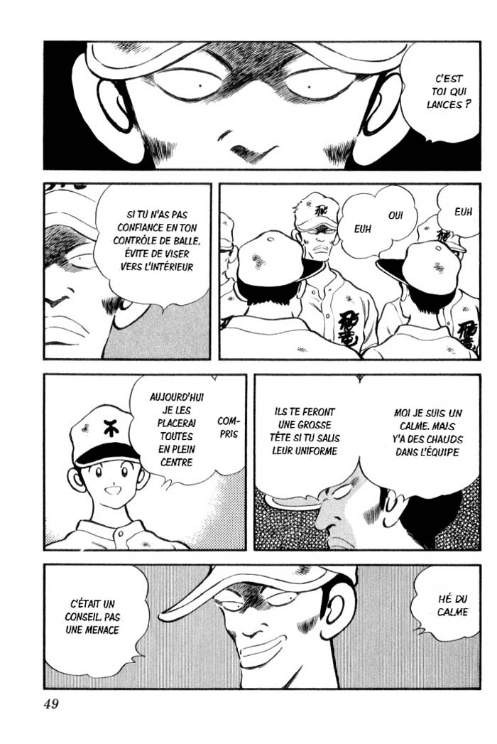 Mitsuru Adachi, roi incontesté des histoires mêlant sport et aventures sentimentales, livre ici une nouvelle variation sur ses thèmes préférés. Ici c'est le base-ball qui tient le haut du pavé, par l'intermédiaire de Hiru, ancien champion qui a dû arrêter à cause d'une blessure au coude. Le ton de l'ensemble est léger, aussi bien sur le plan de la représentation du sport que des relations, qu'elles soient amoureuses ou non, entre les personnages. C'est sûr, Adachi ne se prend pas la tête, et un parfum de tranquillité plane sur ses planches. L'histoire se déroule de façon un peu décousue, à cause de flashes-backs un peu maladroits, au milieu de scènes d'action. Autre point négatif, on plonge directement dans une partie de base-ball, sans que les fondamentaux ne nous soient expliqués. Question de culture, tellement il est vrai que le base-ball est -ou fut ?- un sport populaire au Pays du Soleil Levant... Mon reproche ne s'adresse donc pas à l'auteur, mais plutôt à l'éditeur, qui aurait pu se fendre d'un petit supplément sur le sport. Du coup, on ne comprend pas grand-chose à une bonne moitié de l'histoire, d'autant plus que les personnages ne sont pas très différenciés. Certes, le dessin d'Adachi est sympathique, dans un style "mignon", mais ça ne déplace pas les montagnes. A réserver aux fans de l'auteur.
