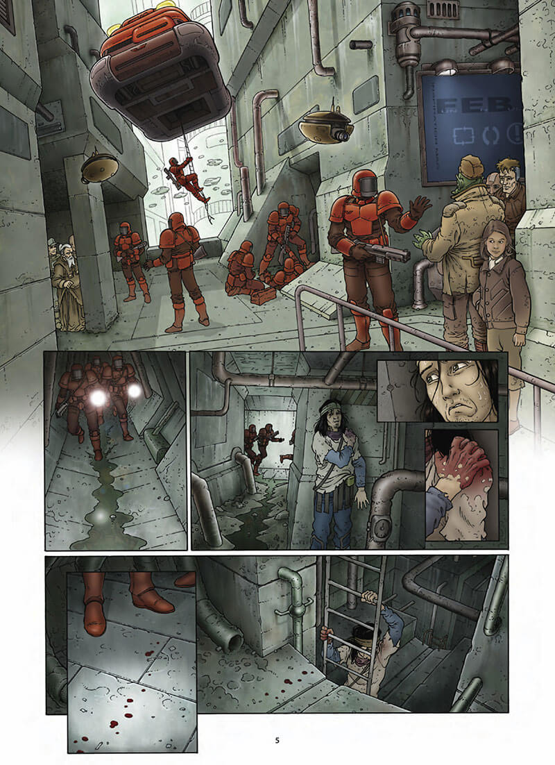 (Avertissement : j'accorde toujours plus d'importance au scénario qu'au dessin) Les trois tomes se lisent bien. Le scénario développe pas mal de personnages au point d’avoir un peu de mal à suivre au début, mais petit à petit la trame se met en place… pour finir en queue de poisson puisque la série est abandonnée. Il se déroule dans un monde futuriste. Post-apo, en fait, mais qui a eu largement le temps de se reconstruire. Un objet est dérobé par l’héroïne, qui devient gênante pour la caste dirigeante (n’en disons pas plus pour ne pas déflorer l’histoire). Quelques petits clins d’œil : le dessin de Casimir sur un T-shirt par-ci, le logo d’un célèbre fast-food faiseur d’obèses par-là, quelques cases mettant en scène notre John Difool national, et le nom de la guérisseuse, que l’on appelle Mallolo mais dont on voit sur les vignettes que le nom de famille est "Fimble" ce qui nous laisse à penser qu’un rôliste est aux manettes. Quelques jeux de mots volontairement anachroniques mais discrets (paroles de chanson de Cloclo…) n’apportent rien mais n’alourdissent pas plus que ça les dialogues. Bref, rien de bien folichon dans ces petits apports décalés. L’histoire aurait tout de même méritée d’être terminée. Dessin agréable. J’en conseille l’achat uniquement si vous vous sentez être le cœur de cible de la BD, vous passerez vraisemblablement un moment plaisant ; mais ne me demandez pas le remboursement si vous n’êtes pas satisfaits. Les dubitatifs de ce genre d’univers risquent d’être déçus. 10/20