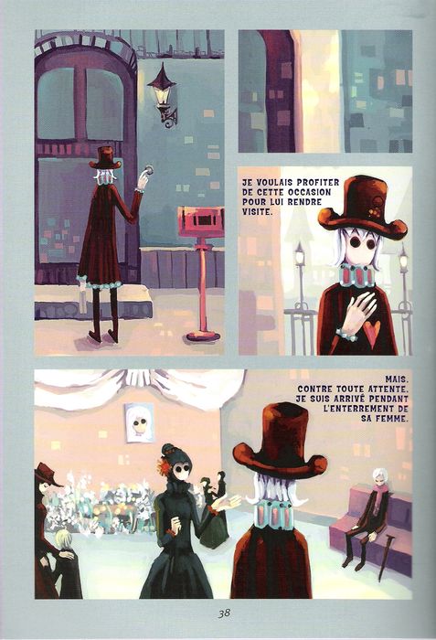 "My way" est une bd atypique qu'il m’est difficile de noter. J’ai été émerveillé par l’univers coloré de cette jeune auteure qui nous invite à la suivre dans son monde imaginaire, emprunt d’onirisme et de poésie. Les courts récits mettent en scène un certain monsieur "V". Qui est-il ? Pourquoi est-il appelé comme ça ? Nul ne le sait vraiment. Sans doute parce qu’il est le "vecteur" des émotions des gens qu’il croise sur son chemin ? Mais là n’est pas l’essentiel. Les histoires mises en image ont une portée universelle. Elles sont très souvent tristes et mélancoliques mais toujours avec une note d’optimisme à la clé. Chacune d’entre elle est ensuite commentée par l’auteure. Et c’est à ce moment qu’on se rend compte que toutes les histoires sont inspirées de choses vécues par Ji Di ou par ses proches. Malgré son jeune âge (elle est née en 1983), elle a déjà surmonté bien des épreuves (dont le décès de sa maman) et le canal qu’elle a trouvé pour les exorciser est la bd. Difficile donc de rester indifférent au talent de cette petite chinoise qui possède une identité graphique forte où les gens ressemblent davantage à des pantins mus par des fils invisibles et où l’impassibilité de leurs visages laisse pourtant transparaitre bien des émotions. Certains trouveront ces histoires trop simples, trop lisses voire trop naïves. Je ne pourrai leur donner entièrement tort. Mais ce que je retiendrai de ma lecture, c’est la sincérité de l’auteure qui sait trouver les mots justes pour apaiser ses maux et ceux de beaucoup de gens. Bref, une bd qui aide à relativiser.