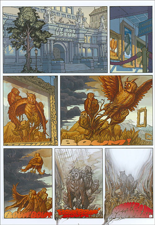 Voilà un album assez original. On arrive à nous faire croire à l’existence de mondes parallèles, le réel – le nôtre, et celui de l’imagination, que nous pouvons apercevoir dans les tableaux qui couvrent les murs des musées. Outre l’intrigue centrale – que j’ai trouvée finalement assez moyenne, cet album peut se lire comme un super « Où est Charlie ? », qui testerait notre culture artistique en nous faisant découvrir au milieu des cases et des personnages (quand ce ne sont pas des personnages de l’album) des œuvres d’artistes majeurs (surtout du XXème siècle, mais pas seulement). Pour les flemmards et/ou les nuls en culture générale, « un inventaire des œuvres et des artistes rencontrés au fil des pages » placé en fin d’album permet une relecture plus ludique. Plusieurs côté négatifs quand même. D’abord le côté un peu « Polly Pocket » de la colorisation du monde parallèle, qui ne m’a pas emballé. Ensuite le fait qu’on ne connaîtra probablement jamais la suite et donc la fin de cette série visiblement interrompue. Enfin, j’ai été gêné par le dessin des personnages (en particulier des visages), parfois très précis (et très bon), et parfois à peine esquissé : cette alternance m’a été désagréable. Je ne recommande pas forcément l’achat, mais si vous avez l’occasion de l’emprunter, n’hésitez pas à découvrir un album qui sort du lot.