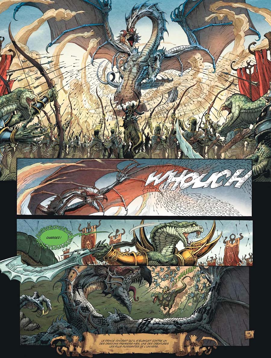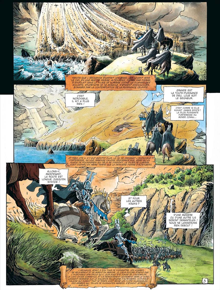 Indéniablement, ces chroniques sont belles. Le dessin est épique, dynamique, contrasté à souhait. Il est prompt à retranscrire les champs de bataille immenses avec force détails et amplitude. Cependant, l'aspect formel montre vite ses limites quand la narration ne suit pas. Pourtant Froideval lance une quête digne des Nibelungens ou de la Terre du Milieu, dans un univers bien construit et sacrément diversifié dans les décors et le bestiaire. Seulement voilà, malgré la relative simplicité de l'intrigue centrale, les aventures du petit groupe s'enlise dans une routine de péripéties ponctuées de guerres dantesques dont nos héros se sortent toujours avec toujours plus de pouvoirs magiques démoniaques. C'en devient malheureusement lassant car répétitif pour devenir vain. Le désintérêt gagne peu à peu à vouloir nous écarter de la trame originale et j'ai rendu les armes vers le sixième volet avec regret. Du regret car si l'histoire avait été condensée pour montrer que l'auteur sait où il va, on n'aurait pas ce sentiment désagréable de voir un étirement artificiel pour vendre plus que de raison. Ce n'est donc pas ces prochains mois que j'en connaîtrai la conclusion. Peut-être oublierai-je un jour cette déception et me relancerai dans sa lecture. Pour le moment je préfère passer à autre chose.