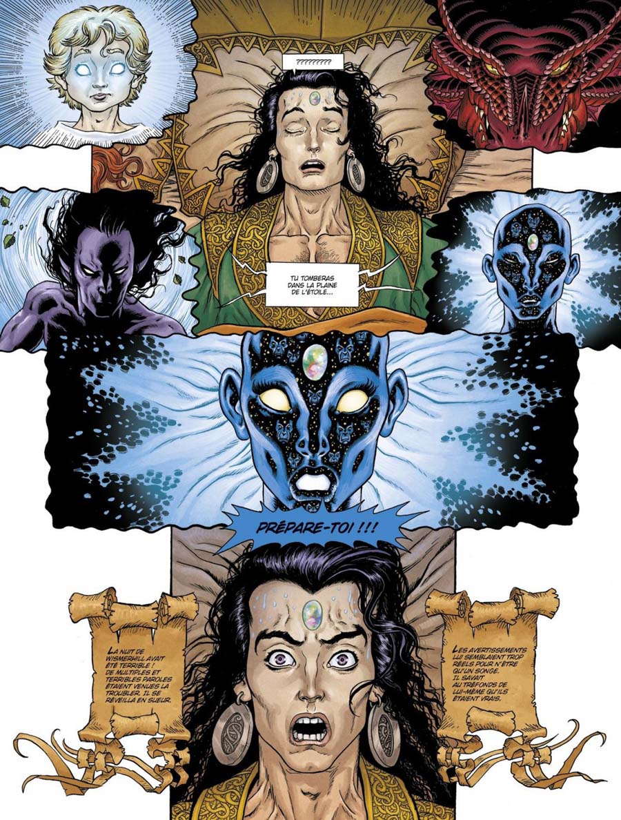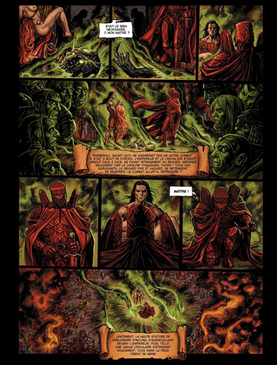 On peut être très copains mais ne pas avoir les mêmes goûts. Mon meilleur ami me sachant bon public de medieval fantasy m'a plusieurs fois recommandé cette lecture. Je l'aime toujours autant mais je ne peux pas en dire autant de ma lecture. Ce qui commence comme une épopée prometteuse de dark fantasy sombre rapidement dans une surenchère de pouvoirs et de batailles interminables. Le début, avec les dessins d’Olivier Ledroit, capte l’attention grâce à un univers visuellement riche et une intrigue qui semble solide. Mais dès le deuxième ou troisième tome, on commence à percevoir les failles. Le principal problème, c’est que le scénario devient répétitif et peu inspiré. Wismerhill, le héros, devient de plus en plus puissant au fil des tomes, mais cette montée en puissance n’apporte rien de vraiment nouveau. On est dans une mécanique classique de “grobillisme”, où chaque bataille est plus grande, chaque pouvoir plus impressionnant, mais où l’intérêt narratif s’amenuise. Le développement des personnages est laissé de côté pour faire place à des scènes de combat interminables qui finissent par lasser. Ce qui aurait pu être une saga épique sombre et captivante devient une suite de scènes de baston où les enjeux disparaissent complètement. On a l’impression que Froideval ne sait plus où il va avec son histoire, et cela se ressent dans la construction hasardeuse du récit. Les dialogues sont plats, les personnages manquent de profondeur, et les intrigues secondaires sont à peine esquissées avant d’être abandonnées. Le changement de dessinateur, quand Ledroit est remplacé par Pontet, n’aide pas non plus. Bien que Pontet essaie de suivre la lignée de son prédécesseur, les dessins deviennent confus, trop chargés, et la colorisation souvent criarde rend l’ensemble encore plus difficile à suivre. L’abus des doubles pages, des explosions de sorts magiques et des batailles gigantesques rend la lecture épuisante plutôt qu’épique. Ca m'arrive rarement mais là j'ai abandonné à mi-chemin, Wismerhill aura eu raison de moi aussi.