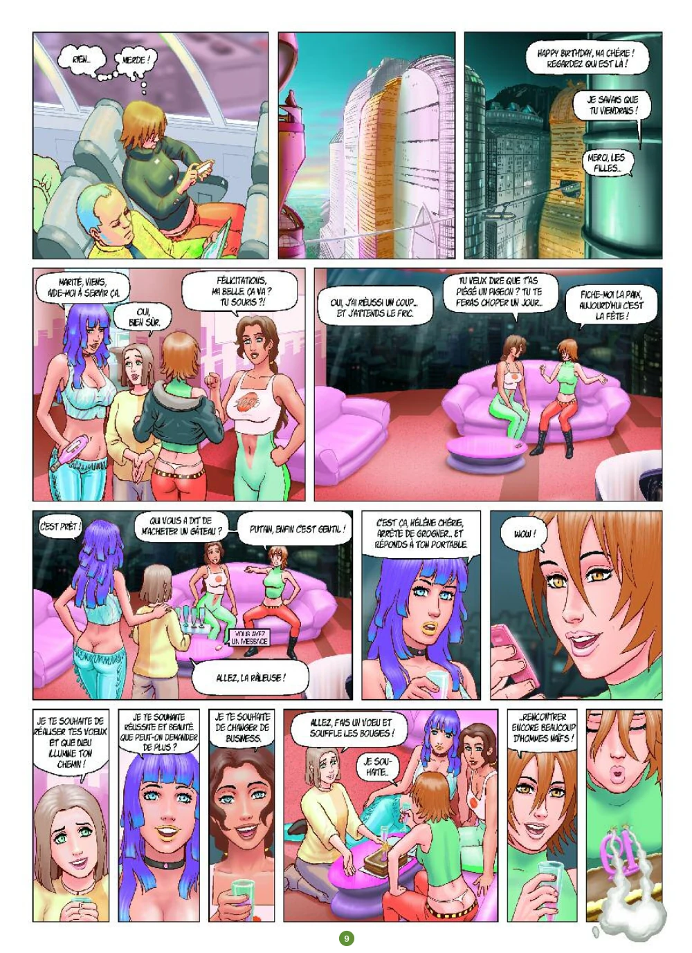 Une BD de cul bien sale, mais en même temps avec des avantages indéniables. En commençant par le négatif, on a (là encore ...) droit à des scènes de sexe forcé (où les filles finissent par apprécier, évidemment ...), un dessin qui manque parfois un peu de maitrise (notamment dans le premier tome), des proportions anatomiques dantesques (bon, le genre favorise plutôt ça, alors pourquoi pas), et une colorisation informatisée qui pique parfois les yeux. J'ajouterais aussi que les scènes de sexe sont assez ... poisseuses, mais là encore on pourrait dire que c'est le genre qui veut ça. Pour le reste, je dois avouer que je n'ai pas boudé mon plaisir. C'est une BD avec une histoire (attention, c'est pas non plus révolutionnaire à ce niveau) et quelques dialogues qui ne sont pas mauvais, des personnages plutôt bien campés et un développement intéressant. Dans le genre BD de cul, on a déjà fait pire (et mieux, évidemment), mais ça reste pas mal. L'auteur a quand même un coup de crayon pas mal, et on sent qu'il se fait plaisir dans le style futuriste kitch. Un petit plus que j'ai apprécié dans la série. On n'est pas sur une révolution en terme de BD, mais c'est efficace et la lecture n'est pas des pires, alors pourquoi pas ?