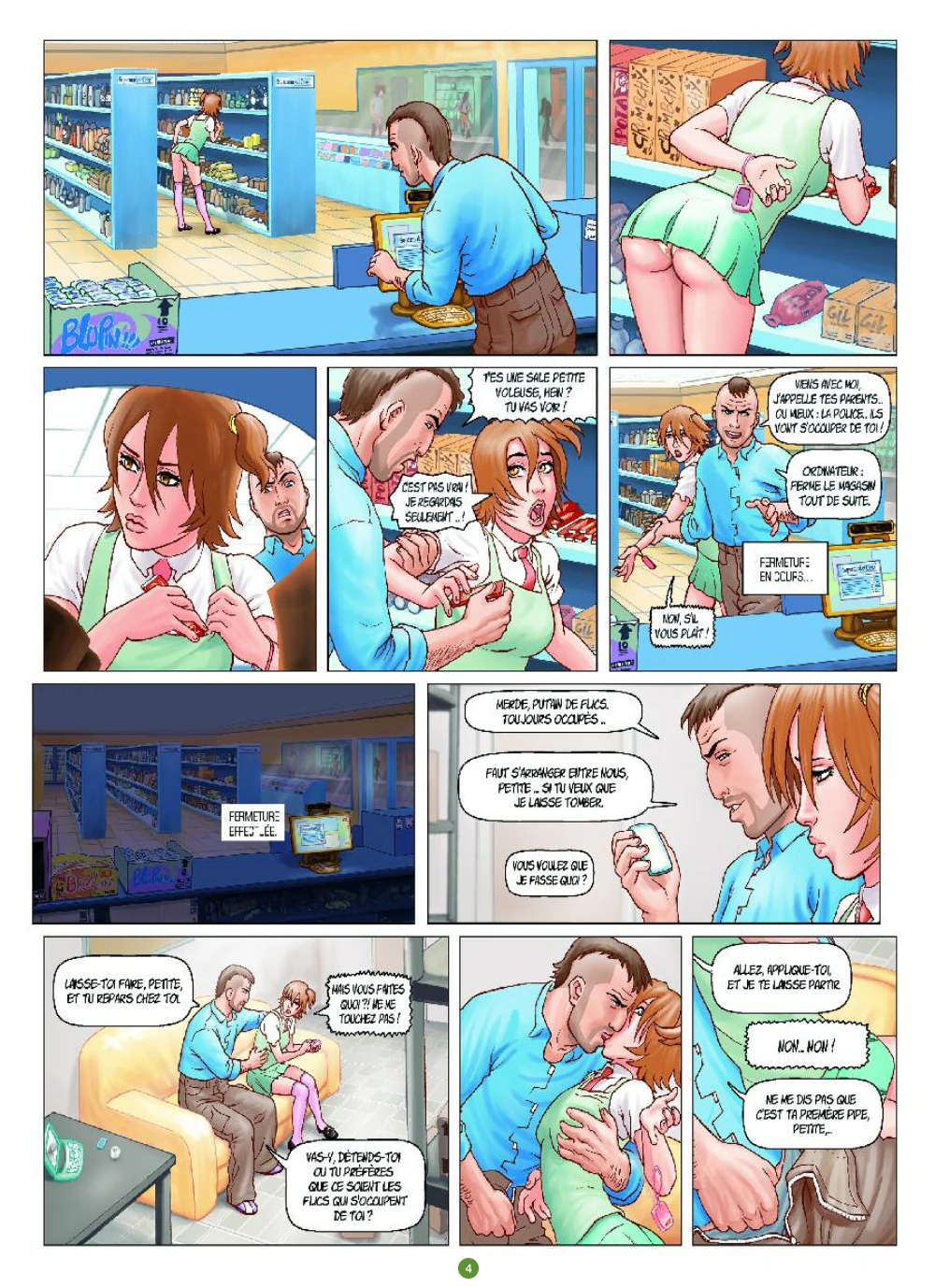 Et bien oui je me lâche et j'attribue cette note de franchement à cette série qui dans le genre de la BD érotique, ou plutôt porno ici, ne manque pas d'atouts. Disons que dans le genre il y a une esquisse de scénario, bon pas révolutionnaire non plus, mais scénario tout de même, les jeunes femmes qui nous sont présentées sont ma foi fort croquignolettes et encore une fois sans tare physique qui pourrait nous empêcher de les regarder à outrance. Mon bémol principal provient de la colorisation informatisée qui pique un peu parfois, de même les décors ne sont pas les plus beaux qui soient. Pour autant je recommande ce titre et si à l'occasion je tombe sur les suivants j’achèterais bien moi.
