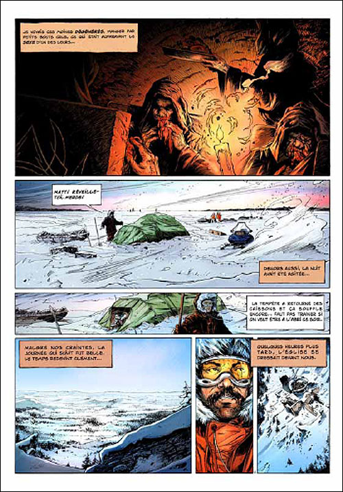 Tiens, on se serait cru dans le premier tome de la série Hanté… des histoires empruntées au folklore, aux légendes urbaines, auxquelles on accole un élément de sa sauce pour faire « moderne », et hop ! Ici le bagage folklorique vient des écrits de Howard Phillips Lovecraft, écrivain fondateur du fantastique moderne (juste après Edgar Allan Poe). Un écrivain ignoré de son vivant, vénéré après sa mort, souvent surévalué, encore plus souvent imité. Lovecraft, c’est tout de même assez répétitif ; un homme raconte une expérience aux frontières du réel, une rencontre avec l’un de ceux qu’il nomme « les Grands anciens ». C’est tout de même un imaginaire foisonnant, parfois prenant, mais souvent brouillon. Patrick Renault fait ses débuts de scénariste en mixant ces éléments avec des contextes modernes. Le résultat n’est pas concluant, ni même convaincant. Comme dans Hanté, nous avons des histoires courtes qui se terminent abruptement, sans intérêt réel, sans conclusion surtout. Pire, avec juste un élément intéressant, faire un récit de 5 ou 6 pages relève du défi ; plantage en grand pour Renault. Il n’y a guère qu’une histoire qui m’ait vaguement intéressé dans tout cela ; c’est le récit intitulé « Tunguska » ; c’est aussi celui dont j’ai le plus apprécié le graphisme, exécuté par Stéphane Collignon et Fabien Alquier. A noter également que la première et la dernière histoire (le tome 1 en compte 5) sont à lire en miroir. Mis à part ce court récit et les illustrations de Stéphane Peru, c’est tout à fait dispensable, même pour les complétistes de l’univers lovecraftien.