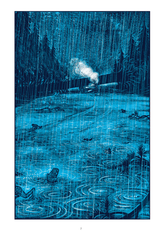 Un récit assez étrange et atypique. La pluie à tout envahit, l'eau monte, les silures arrivent, et dans ce chaos de la fin du monde, une femme est envahit par la mélancolie. Le récit est très joliment illustré, avec un ton très sombre et pourtant pas noir. On est dans une atmosphère ouatée, l'émotion de l'héroïne envahit les pages. Le récit tend vers le fantastique, et pourtant on ne décroche pas une seconde de la réalité. Car quoi de mieux pour comprendre la réalité que le fantastique ? Des personnages apparaissent et parlent. D'abord un chat dans une maison vide, et une grand-mère qui semble savoir beaucoup. Un père et un petit garçon vont venir plus tard. Il faut parler, beaucoup parler. C'est une catharsis pour le personnage principal que de faire ce trajet. On va assister à une révélation sur ce qui s'est passé. Le récit prendra une allure de drame. Et pourtant le soleil reviendra, le jour se lèvera à nouveau. Ce récit est à la fois prenant et pourtant insaisissable au premier abord. Tout est suggéré, on se doit de comprendre par soi-même. Les relations entre les gens ne sont pas simples, les raisons des actes non plus. On ne peut pas tout comprendre. Mais au moins en savoir le plus gros. Et c'est ce que ce livre démontre. Un bien bel ouvrage, d'autant que Futuropolis fait des magnifiques impressions. La lecture est chaudement recommandée. Elle est envoutante. 4/5