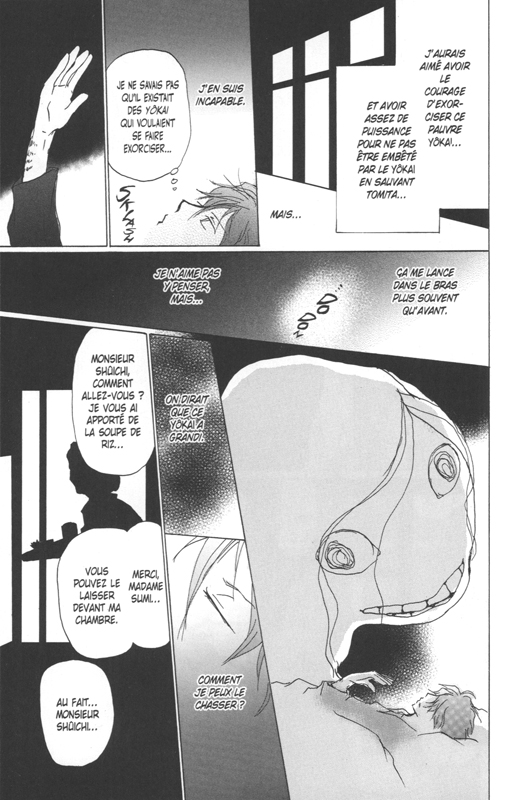Le pacte des Yôkai, mine de rien, c'est une série de grande qualité, et pas seulement graphiquement parlant. On ne peut qu'admirer la finesse du trait de Yuki MIDORIKAWA, ainsi que son talent en miniaturisation de personnage. Mais à côté de ça, beaucoup d'autres ingrédients en font un très bon moment de lecture. Le thème de ces histoires courtes d'une part : avec les Yôkai c'est tout un pan du folklore japonais qui nous est présenté, sans vraiment se prendre au sérieux pour ce qui est des aventures de Natsume, mais également de manière plus encyclopédique avec les références et autres clés de lecture. Le ton du récit d'autre part : entre humour et deuxième degré, on a beau être dans un manga officiellement destiné à un public jeune et féminin, mon grand âge ne fut pas un handicap loin de là. Depuis que j'ai lu La Forêt de Miyori et Le Terrain vague, j'éprouve une affection toute particulière pour ces personnages surnaturels du folklore japonais. Ici on est un peu à mi-chemin entre les esprits-de-la-nature comme ceux que rencontre Miyori et les traditionnels fantômes et autres revenants que l'on verrait plus dans les fils d'horreur nippons. Les histoires sont indépendantes les unes des autres, avec quelques personnages ou yôkai récurrents. Au départ j'ai eu peu peur que toutes ces aventures deviennent un peu répétitives mais au bout de 4 tomes, l'imagination de Yuki MIDORIKAWA est toujours à la hauteur. Entre Natsume qui voudrait qu'on le laisse un peu tranquille mais qui finit par affectionner ces compagnons d'un genre particulier et plutôt envahissants, "Maître Griffou" son soit-disant garde du corps, mais qui est en fait un yôkai emprisonné dans un maneki neko et qui n'attend que l'occasion de lui dérober son "carnet d'amis" et toutes les rencontres qu'ils font ensemble : je ne me lasse vraiment pas. Détail amusant, Yuki MIDORIKAWA ajoute de temps en temps ce qu'elle appelle des "divagations" : en plein milieu d'une histoire, elle ajoute en marge un texte où elle nous raconte sa vie, ses séances de dédicaces, ses joies et ses difficultés à écrire ce manga, elle remercie aussi très souvent ses lecteurs, je n'ai pas toujours tout lu mais l'idée est surprenante, bien que pas forcément ahurissante non plus : c'est une femme (elle raconte sa vie) japonaise (elle remercie ses lecteurs, remercie ses éditeurs, et remercie encore, on la verrait presque nous faire une courbette ;)).
