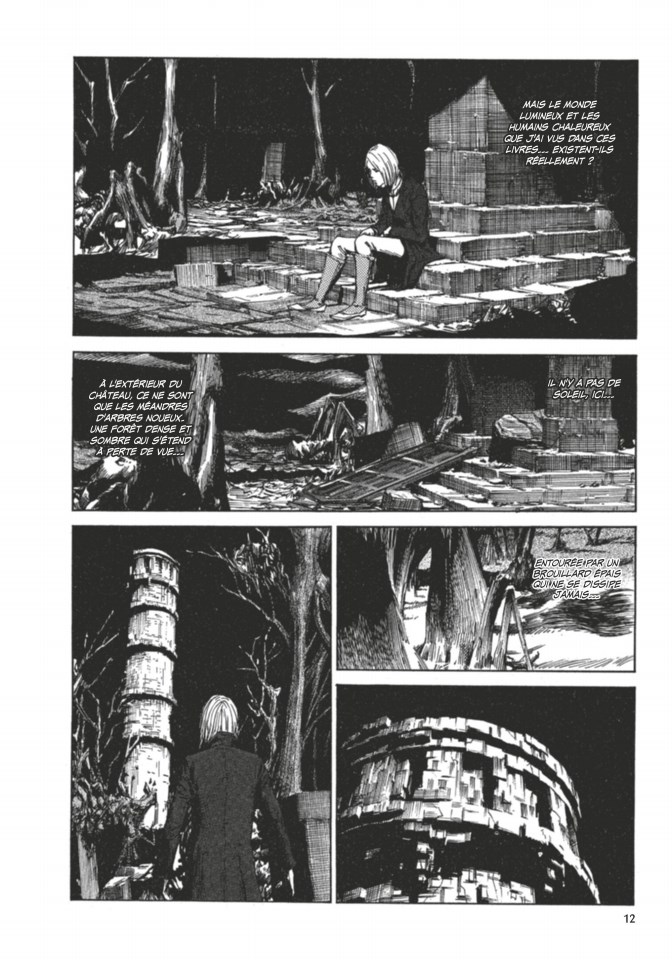 Ce recueil est composé de 4 histoires. The Outsider (Je suis d’ailleurs), est l’adaptation en manga d’une histoire d’H.P. Lovecraft, génial romancier, créateur d’une cosmogonie fabuleuse connue sous le nom de Mythe de Cthulhu. La seconde, est une adaptation de La maison à mezzanine d’Aton Tchekhov, et la troisième reprend Vingt-six gars et une fille de Maxime Gorki. Enfin, le dernier récit est une œuvre originale se déroulant dans un japon médiéval, frappé de famine et autres plaies, propices à l’apparition de diverses bakemono appartenants au folklore japonais.